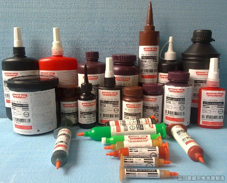 無影膠又稱、光敏膠、紫外光固化膠,無影膠是指必須通過紫外線光照射才能固化的一類膠粘劑,它可以作為粘接劑使用,也可作為油漆、涂料、油墨等的膠料使用。UV是英文Ultraviole