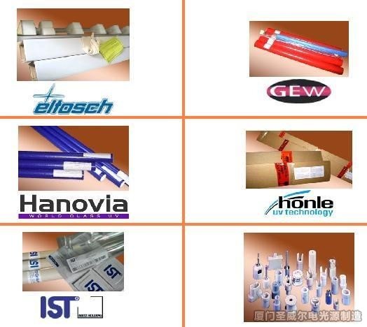 1.進口膠印刷機燈管:有IST、AMBA Alpha-cure、GEW、TCS、Nordson諾信、Voltarc WQP(Western Quartz即CS系列)SACK、Hanovia海諾威、英國派馬、日本EYE、GS等品牌大量用在海德堡 、羅蘭、高寶、櫻井、小森 、捷拉斯,互通,志圣,光源,琳得科等膠印機 柔印凹印機上。